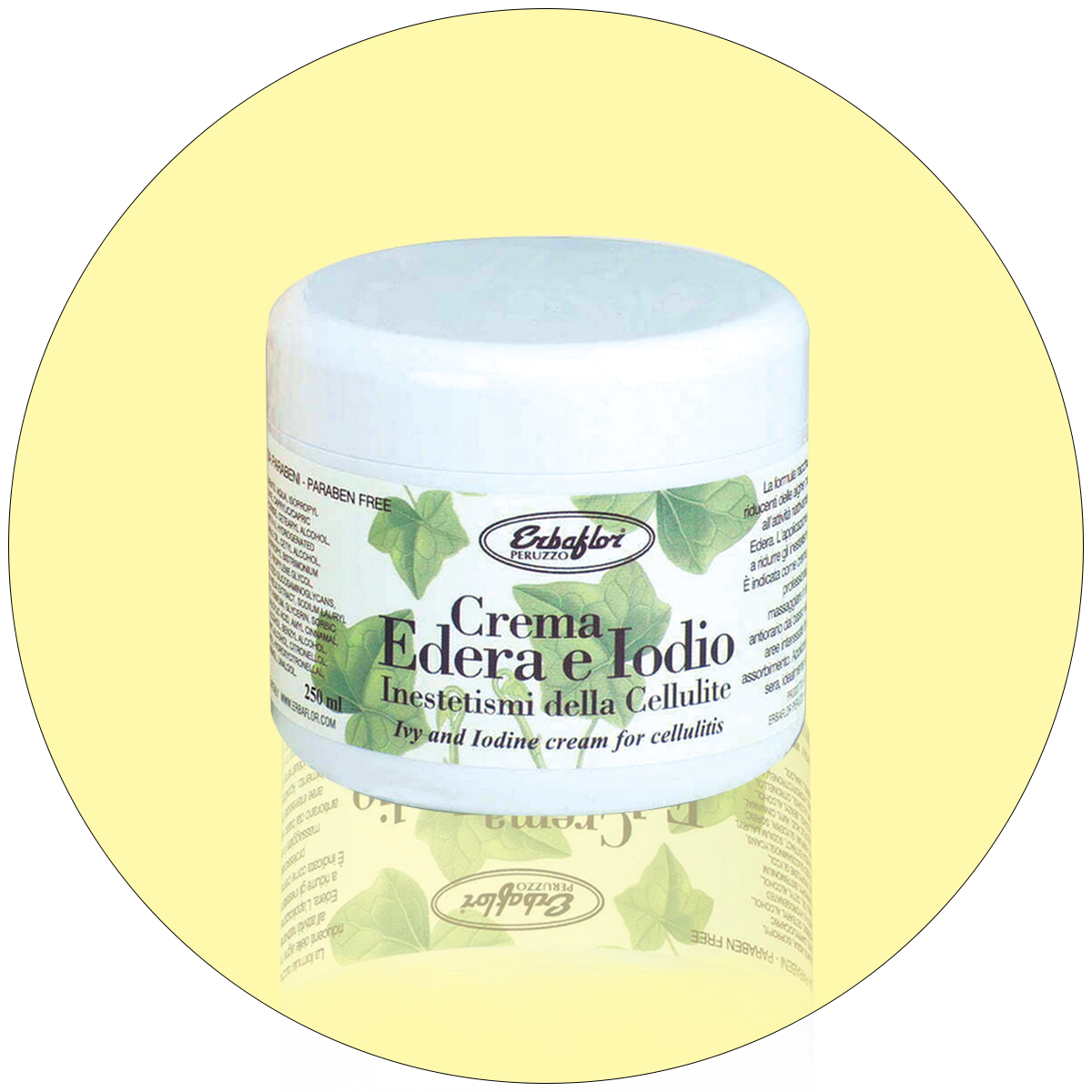 La crema Edera e Iodio di Erbaflor è il trattamento specifico per gli inestetismi della cellulite. La sua formula attiva racchiude le proprietà riducenti dell’Alga Marina associate all’attività riattivante del microcircolo dell’estratto di Edera per un effetto tensore e snellente.